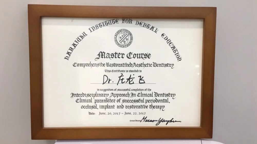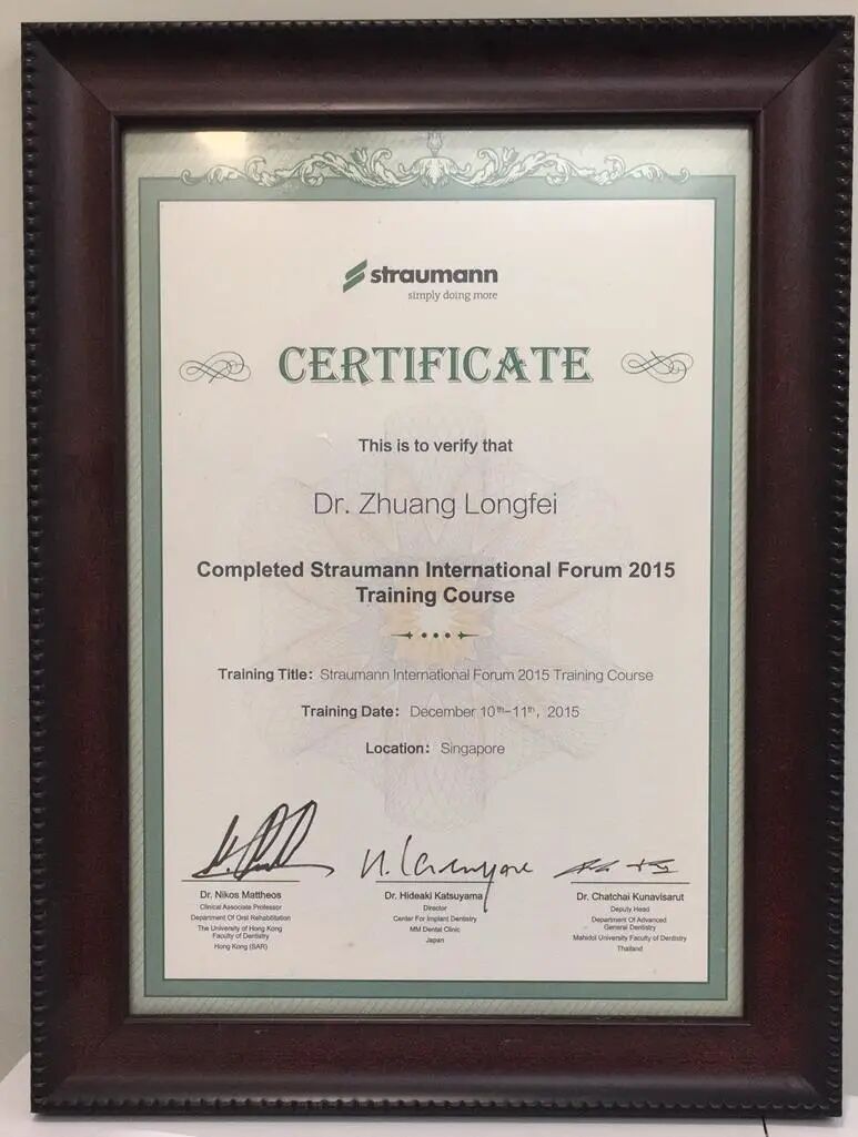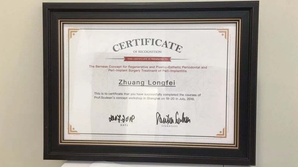 庄龙飞医师是Lang教授于香港大学任教期间认可招收的唯一博士,在攻读博士期间,庄龙飞医师多次赴海外参加学术会议,三次在国际牙科大会IADR全会作大会发言,并参与完成治疗牙周病及种植修复病例数千例,在专业学术杂志上发表论文二十余篇,临床论文得到国际认可。