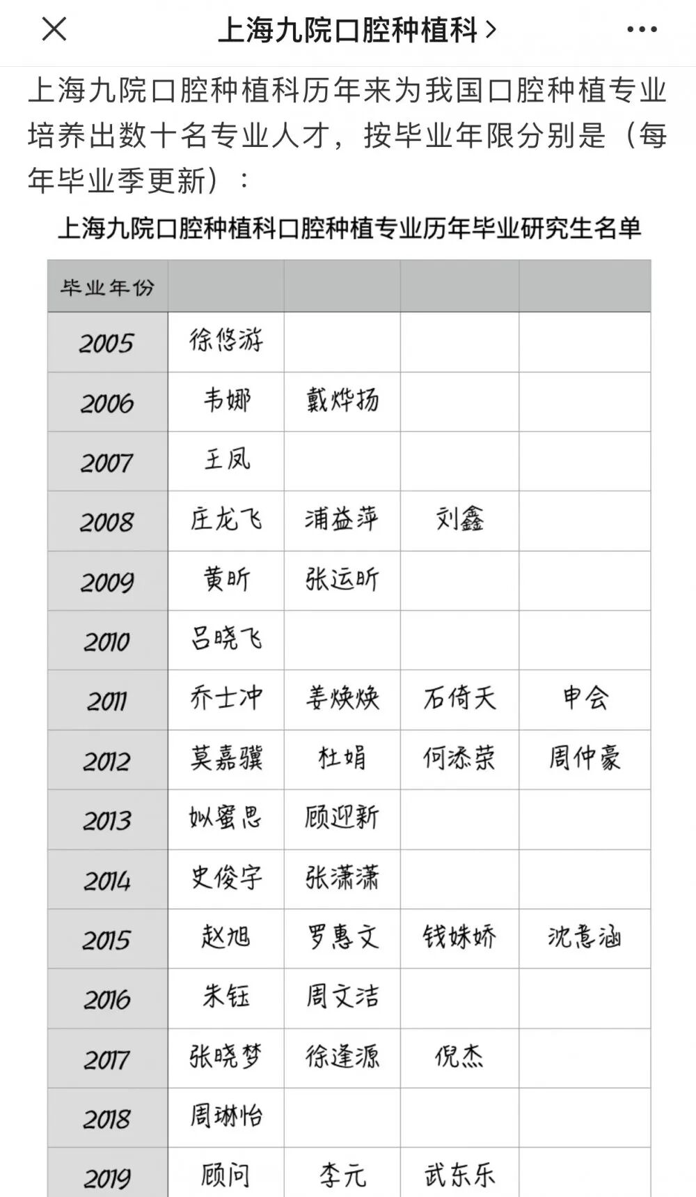 庄龙飞,上海交通大学附属第九人民医院口腔医学院本科毕业后以第一名的成绩免试直接录取上海交通大学附属口腔医学院口腔种植专业学硕士,师从现上海第九人民医院口腔种植科主任赖红昌教授。
