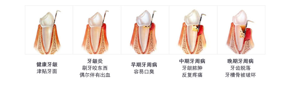 牙周病的主要原因是口腔卫生不良所致。而牙周病治疗不及时,情况就会恶化,使得牙周炎变的严重,诱发牙周组织包括牙龈和牙槽骨受到严重的破坏,进而导致牙槽骨萎缩,牙齿因而失去支撑,变得松动和出现移位,最后甚至脱落。因此,必须早期发现、早期治疗,不仅能控制病情发展,而且还可治愈。